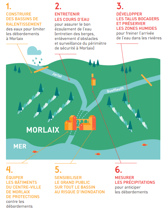 En bon Breton, je me souviens des inondations de Morlaix en 1974, avec deux mètres d’eau dans le centre-ville, dont les journaux avaient tant parlé. À cette époque, beaucoup, en particulier les écologistes, avaient mis en cause le remembrement qui, en détruisant le bocage, avait accélérer l’écoulement des eaux vers la ville. Après tout ce temps, ceci est toujours d’actualité puisque le rétablissement des “talus bocagers” reste un des points du plan d’action émis récemment par le Syndicat Mixte du Trégor.